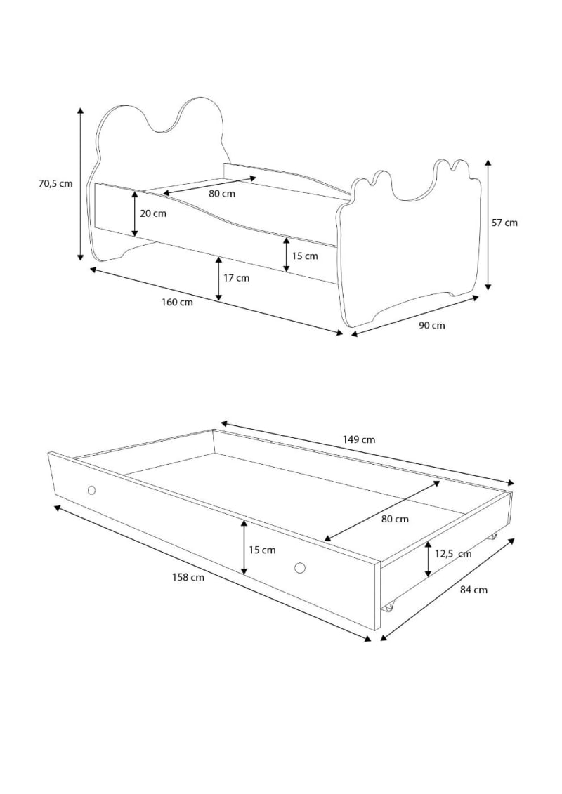A BEAR kollekció egyszemélyes ágya ideális választás a legkisebbek számára. Ez a mesés ágy, amely medve alakú, tökéletesen illeszkedik mind a fiú-, mind a lányszobába. A gyártási folyamat során környezetbarát, vízbázisú festékeket használtak, amelyek biztonságosak és ellenállnak a mechanikai sérüléseknek. Ezenkívül az ágynak nincsenek éles sarkai, és a grafikát laminát védi. További előnye a matrac cipzáras huzata, amely könnyen levehető és mosható. Az ágy praktikus Ágyneműtartó_fiókot tartalmaz, amely jobb vagy bal oldalra is felszerelhető.