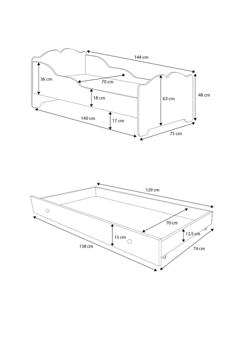 Egy XIMENA gyermekszoba kollekciójából származó egyszemélyes ágy egyszerű fehér matt kivitelezéssel tökéletesen illeszkedik a Gyermekszoba belső terébe. A széles grafikai választéknak köszönhetően könnyedén megtalálhatod a gyermeked szenvedélyének leginkább megfelelő modellt. A gyártási folyamat során környezetbarát vízbázisú festékeket használtak, amelyek biztonságosak és ellenállnak a mechanikai sérüléseknek. Emellett az ágynak nincsenek éles sarkai, a grafika pedig laminátummal van védve. Nagy előnye a praktikus Ágyneműtartó_fiók és a cipzáras matrachuzat, amely könnyen levehető és mosható. Továbbá, ha extra alvóhelyre van szükséged, ajánljuk figyelmedbe a XIMENA II modellt, amely alvófunkciós fiókkal rendelkezik.