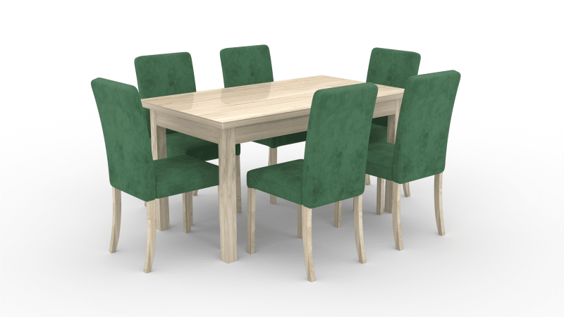 A RODOS 81 szett tökéletes választás lehet az étkeződbe. A szett tartalmaz egy téglalap alakú asztalt és hat kárpitozott széket. Az asztalt kinyithatod egy kiegészítő segítségével, így az asztal hossza akár 180_cm-ig is növelhető. A stílusos székek jellemzője a stabil bükkfa lábak, valamint a kárpitozott ülőfelület és háttámla, amelyekhez a galériában bemutatott szövetek közül választhatsz. A széles színválasztéknak köszönhetően a szett bármilyen belső térbe illeszkedik, és tökéletes kiegészítője lehet a nappalinak, konyhának vagy étkezőnek…