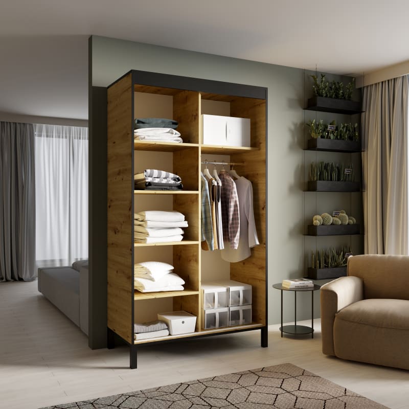 A Bell-M egy tolóajtós szekrény, amely két színváltozatban kapható. Az előlapján elhelyezett tükör és díszes sávok egyedi és különleges design-t kölcsönöznek neki. A szekrény sokféle belső térben jól mutat. A bútor tolóajtós rendszerrel, tágas polcokkal és ruhák függesztésére szolgáló rúddal rendelkezik. A szekrény biztonsága érdekében ajánlott falhoz rögzíteni.