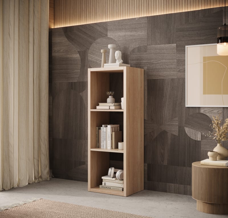 A Cleo I könyvespolc a modern design és a funkcionalitás kombinációja. Univerzális színösszeállításának köszönhetően, amely a klasszikus fehér színt a sonoma tölgy árnyalatú elegáns kivitelezéssel ötvözi, tökéletesen illeszkedik bármilyen enteriőrbe – a nappalitól a hálószobán át az irodáig vagy a Gyermekszobáig. A három tágas polccal felszerelt könyvespolc bőséges helyet biztosít a könyvek, dekorációk, dokumentumok vagy más mindennapi tárgyak tárolására. Kompakt méreteinek köszönhetően kis és nagyobb terekbe egyaránt ideális. A Cleo I tartós anyagokból készült, ami garantálja robusztusságát és ellenálló képességét a mindennapi használat során. A könyvespolc egyszerű, mégis stílusos kialakítása nemcsak praktikus bútordarabbá, hanem a belső tér esztétikus kiegészítőjévé is teszi. Válassza a funkcionalitást és a modern stílust a Cleo I könyvespolccal!