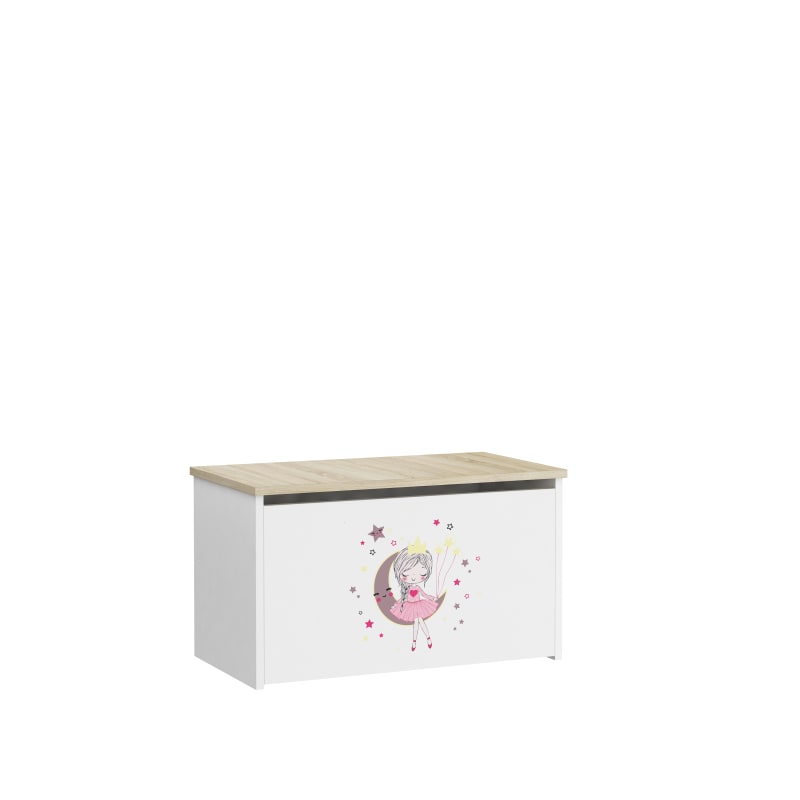 A DARIA játéktároló láda tökéletes rejtett tárolója gyermeked különféle kincseinek. A könnyen kezelhető emelővel a kicsi könnyen kinyithatja és bezárhatja a ládát. A láda eleje fehér színű és színes nyomatokkal is díszíAtő.
