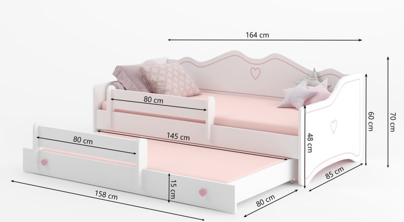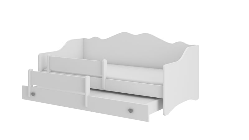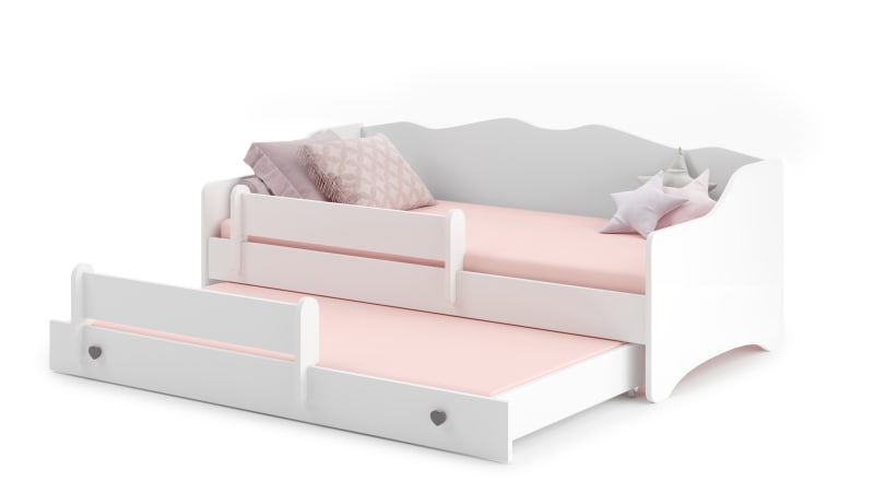 Az EMKA II kollekcióból származó egyszerű formájú franciaágy alvó funkciós fiókkal rendelkezik, ami tökéletes választás lehet két testvér szobájába, és ideális megoldás váratlan vendégek számára is.