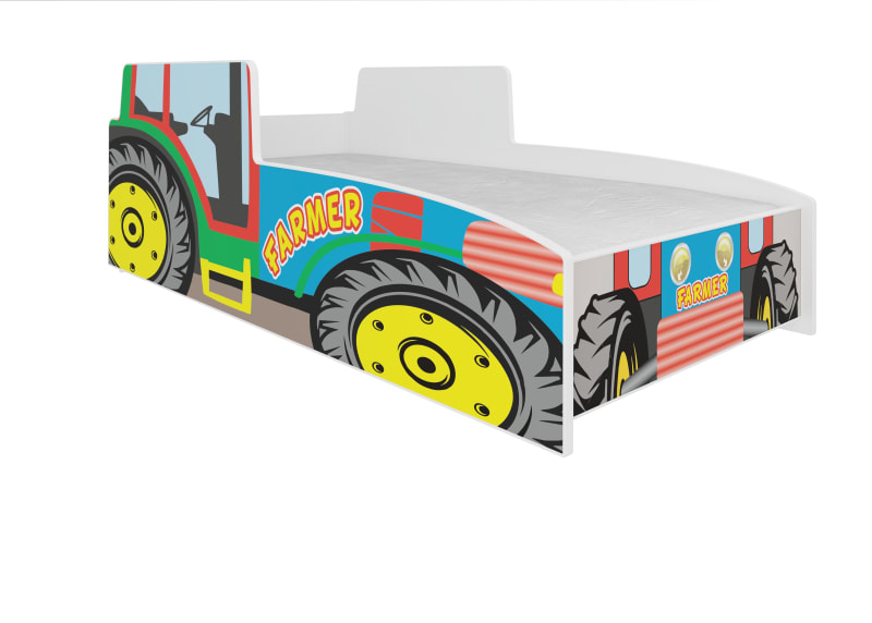 Az egy személyes „FARMER” kollekciós ágy ideális választás kis mezőgazdasági gépek rajongóinak. Gyártásakor környezetbarát vízbázisú festékeket alkalmaztak, amelyek biztonságosak és ellenállóak a mechanikai károsodásokkal szemben. Emellett az ágy éleit nem élesítették, és a grafika lamináttal van védve.