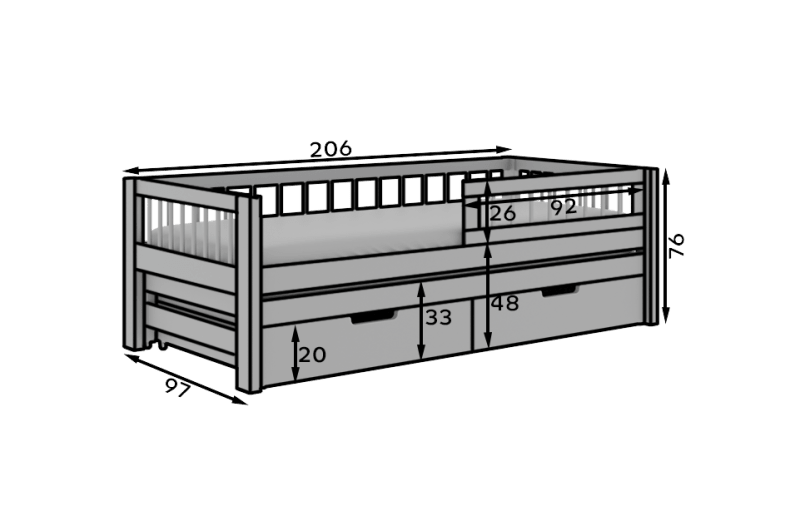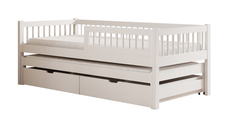 Az Orio gyermekágy – ideális megoldás testvérek vagy nagyobb helyet igénylő gyermekek számára. A franciaágy két méretben kapható: Az ágy tömör anyagokból készült, két vonzó színváltozatban kapható: fehér és fenyő, így könnyen illeszkedik bármilyen belsőépítészeAz. További előnyt jelent az ágy alatt található **két tároló**, amelyek további tárolóhelyet biztosítanak az ágynemű, játékok vagy egyéb tárgyak számára, rendet tartva gyermeke szobájában.Az Orio ágy ötvözi a funkcionalitást az esztétikummal, kényelmes alvást és praktikus megoldásokat kínál a mindennapi használathoz. Matracot tartalmaz.