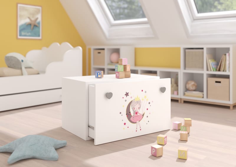 Az INGA játéktároló láda tökéletes rejtett tárolója gyermeked különféle kincseinek. A könnyen kezelhető emelővel a kicsi könnyen kinyithatja és bezárhatja a ládát. A láda eleje fehér színű és színes nyomatokkal is díszíAtő.