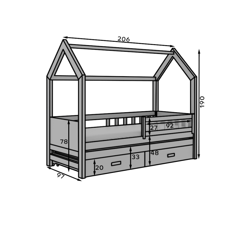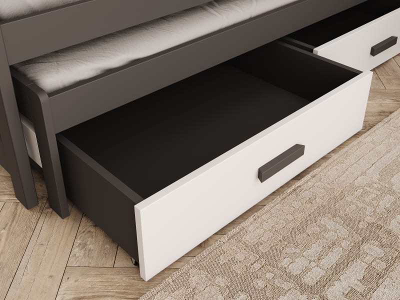 A Jaspis Cottage ágy ideális megoldás az esztétikummal kombinált funkcionalitást kereső családok számára. Ezt az elegáns, kéttónusú bútordarabot úgy tervezték, hogy maximalizálja a helykihasználást és a mindennapi kényelmet. Az ágy két szintből áll – egy fő alvóhelyből és egy kihúzható részből, amely tökéletes további alvó- vagy játszóhelynek. további előnye az ágy alatt található tágas fiókok, amelyek segítenek az ágynemű, játékok vagy ruhák tárolásában, így biztosítva a rendet a gyermekszobában. A biztonságos anyagokból készült masszív konstrukció és a stabil váz a kényelmet és a biztonságot garantálja. A Jaspis House ágy egy funkcionális, stílusos bútordarab, amely tökéletesen illeszkedik bármilyen enteriőrbe. többféle színben kapható, így gyermeke egyéni esztétikai preferenciáihoz igazíthatja! Tartalmazza a matracot.