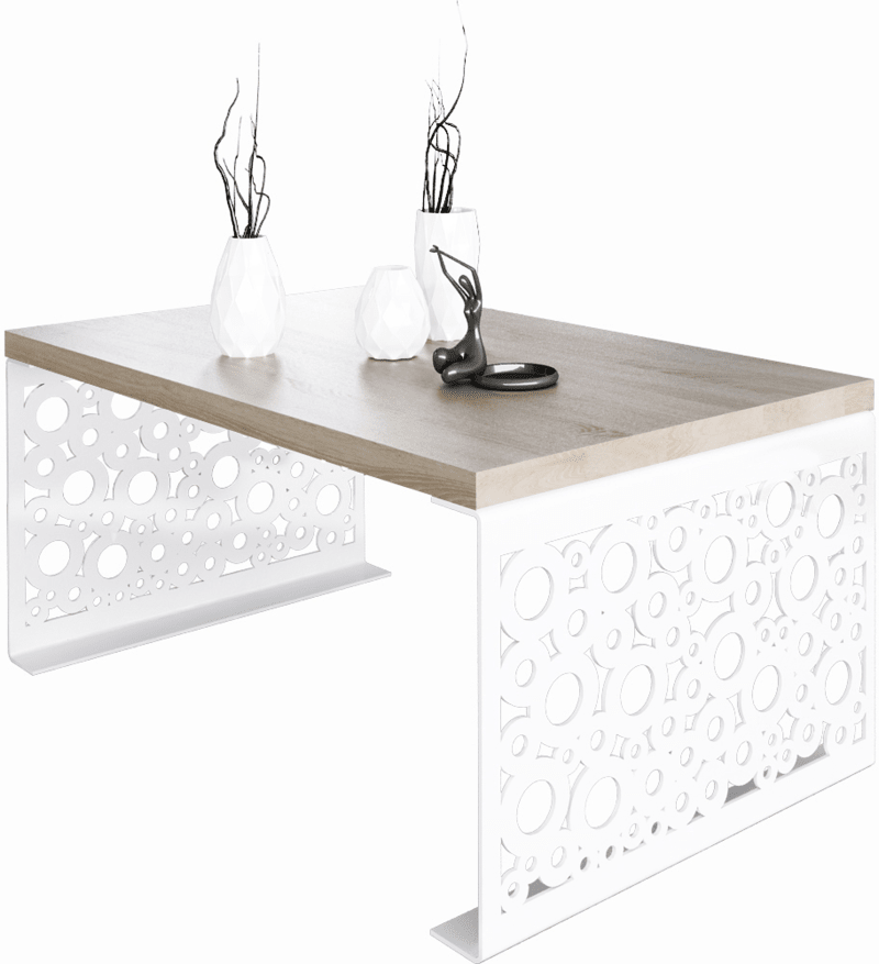 A dohányzóasztal két acéllábból áll, amelyekre egy tömör lapot helyeztek. A RINA egyedi dísze lesz otthonának, és tökéletes hely egy kávé melletti pihenésre.