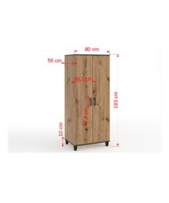 A POLA kollekció kétszárnyú szekrénye kiváló választás a nappaliba, hálószobába vagy előszobába. Kényelmes tárolóhelyet biztosít. Akasztórúddal és tágas polcokkal van felszerelve, ami lehetővé teszi a szoba könnyű rendben tartását. A természetes fa hatását fekete színű kiegészítők és betétek hangsúlyozzák. Modern stílusban tartott, biztosan felkelti a figyelmet. Egyszerű, mégis funkcionális. Ajánljuk, hogy ismerkedjen meg a POLA kollekció többi termékével is.