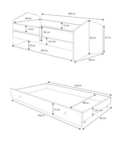 Kétszemélyes ágy a CASIMO II kollekcióból egyszerű formával, kihúzható ágyneműtartóval, amely alvás funkcióval rendelkezik, kiváló választás két testvér szobájába. Tökéletes megoldás váratlan vendégek érkezése esetén is. A számos grafikai választéknak köszönhetően könnyedén kiválaszthatod a gyermeked szenvedélyének leginkább megfelelő modellt. A gyártási folyamat során környezetbarát vízbázisú festékeket használnak, amelyek biztonságosak és ellenállóak a mechanikai sérülésekkel szemben. Ezenkívül az ágy nem rendelkezik éles sarkokkal, a grafika pedig laminálással védett. További előnye a biztonsági korlát, amely biztosítja az éjszakai alvás biztonságát, valamint a matrac huzata, amely cipzárral van ellátva, így könnyen eltávolítható és mosható.