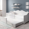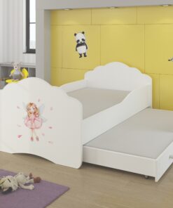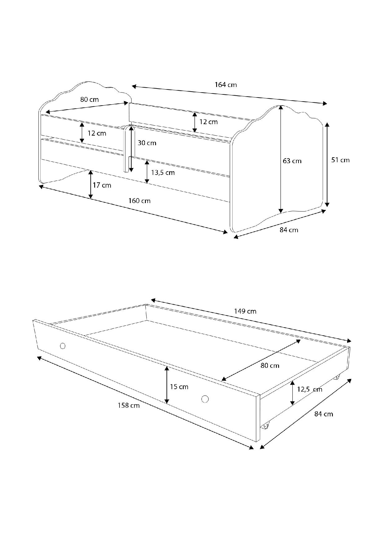 Kétszemélyes ágy a CASIMO II kollekcióból egyszerű formával, kihúzható ágyneműtartóval, amely alvás funkcióval rendelkezik, kiváló választás két testvér szobájába. Tökéletes megoldás váratlan vendégek érkezése esetén is. A számos grafikai választéknak köszönhetően könnyedén kiválaszthatod a gyermeked szenvedélyének leginkább megfelelő modellt. A gyártási folyamat során környezetbarát vízbázisú festékeket használnak, amelyek biztonságosak és ellenállóak a mechanikai sérülésekkel szemben. Ezenkívül az ágy nem rendelkezik éles sarkokkal, a grafika pedig laminálással védett. További előnye a cipzáras matrac huzata, amely könnyen eltávolítható és mosható. Ráadásul az ágy kiegészíthető egy biztonsági korláttal, amely biztosítja az éjszakai alvás biztonságát.