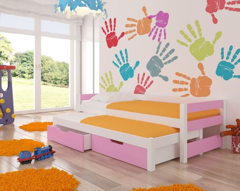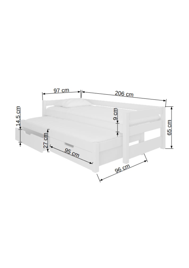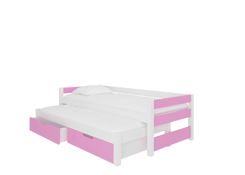 A FRAGA kétszemélyes ágy ideális megoldás két testvér szobájában. Tökéletesen megfelel váratlan vendégek érkezésekor is. Az ágy két praktikus és funkcionális Ágyneműtartó_fiókkal, valamint tartós és masszív kerettel rendelkezik. Az ágyhoz habmatrac készlet tartozik pamut huzattal, amelyek cipzárral levehetők.