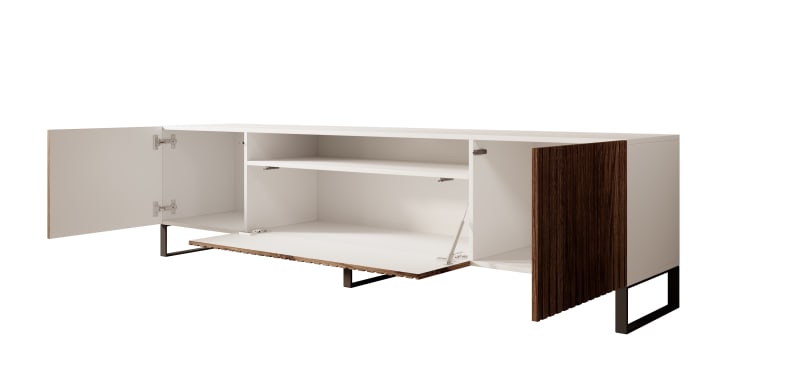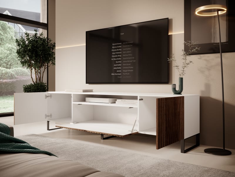 A Miro RTV szekrény modern megoldás a nappalihoz, amely ötvözi az eleganciát és a funkcionalitást. A modell két színváltozatban kapható: klasszikus fehér Catania dekorral és stílusos fekete Catania dekorral, így tökéletesen illeszkedik különböző belsőépítészeti stílusokhoz. A Miro RTV szekrény elérhető álló és fali verzióban, lehetővé téve a térhez és a személyes dizájn igényekhez való alkalmazkodást. A magas minőségű anyagok, beleértve a tartós laminált lemezt, nemcsak hosszú élettartamot, hanem elegáns megjelenést is biztosítanak hosszú éveken keresztül. A szekrény tágas polcokkal és praktikus rekeszekkel rendelkezik, amelyek az összes RTV berendezés és kiegészítő tárolására szolgálnak, biztosítva a rendezettséget és a könnyű hozzáférést a szükséges eszközökhöz. A Miro RTV szekrény tökéletes választás azok számára, akik értékelik a stílust és a kényelmet.