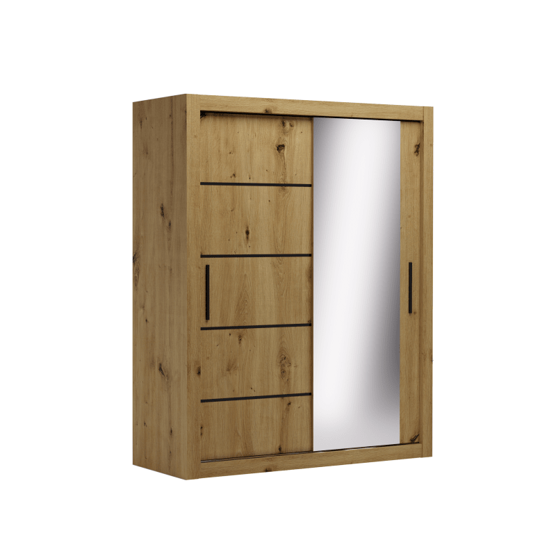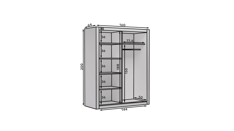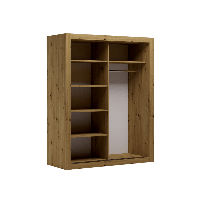 A MOX tolóajtós szekrény ideális megoldás a térrendezésre. A bútor tágas polcokkal és ruhák függesztésére szolgáló rúddal van felszerelve, így lehetőséged van ruháid, öltönyeid, kabátjaid vagy ingeid tárolására. A tolóajtós kialakításnak köszönhetően nem kell extra helyet szánnod az ajtók kinyitására, így tökéletes választás kis szobákba vagy keskeny előszobákba.