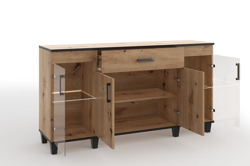 A POLA gyűjtemény komódja olyan bútor, amelyet nappaliba, hálószobába vagy irodába terveztek. A természetes fa hatását hangsúlyozzák a fekete kiegészítők és betétek. A modern stílusban megvalósított kialakítás biztosan felhívja magára a figyelmet. Egyszerű, mégis funkcionális. Arra ösztönözzük Önt, hogy megismerje a POLA gyűjtemény többi termékét is.