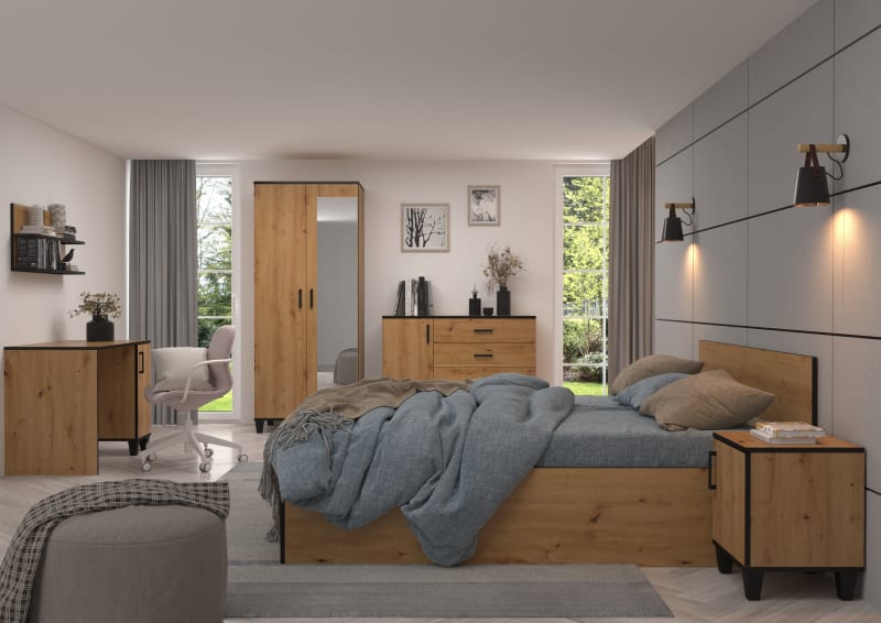 A POLA gyűjtemény komódja olyan bútor, amelyet nappaliba, hálószobába vagy irodába terveztek. A természetes fa hatását hangsúlyozzák a fekete kiegészítők és betétek. A modern stílusban megvalósított kialakítás biztosan felhívja magára a figyelmet. Egyszerű, mégis funkcionális. Arra ösztönözzük Önt, hogy megismerje a POLA gyűjtemény többi termékét is.