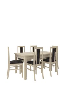 A Rhodes 52 szett ideális megoldás egy klasszikus étkezőhöz. A szett tartalmaz egy masszív asztalt és hat kényelmes széket. Az egyszerű formájú asztal kényelmesen befogadhat hat embert. A bútorok nagyon elegánsak és kényelmesek. Válassza ki álmai szettjének színét és textil kollekcióját.