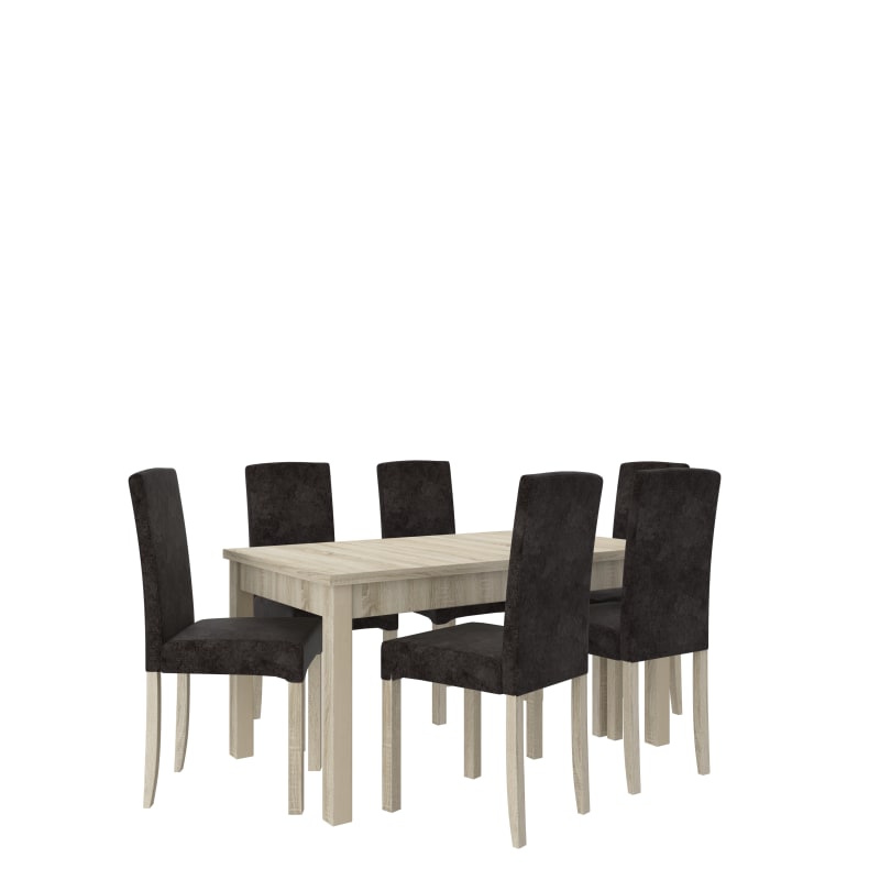A Rhodes 56 szett tökéletes választás lesz az Ön ebédlőjébe. A szett magában foglal egy téglalap alakú asztalt és hat kárpitozott széket. Az asztalt kiegészítő segítségével kinyithatja, ami 180_cm-re kiterjeszti a tetejét. A stílusos székek stabil bükkfa lábakkal rendelkeznek, és bármely galériában látható szövetből választható ülő- és háttámlával vannak ellátva. A széles színválaszték révén ez a szett bármely belső térbe illeszkedik, és tökéletes kiegészítője lehet nappalijának, konyhájának vagy ebédlőjének…