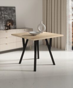 A RODOS 83 készlet ideális választás az étkeződbe. A készlet tartalmaz egy négyzet alakú asztallapot és négy kárpitozott széket. A stílusos székek stabil lábai bükkfából készültek, az ülőfelület és a háttámla pedig tetszőleges kárpitozó anyaggal választható a galériában bemutatottak közül. A széles színválasztéknak köszönhetően a készlet bármely belső térbe illeszkedik, és kiegészíti a nappalidat, konyhádat vagy étkeződet.