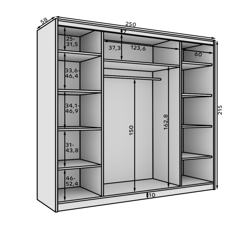 A Tolóajtós szekrény Andy 250 funkcionális és elegáns megoldás bármilyen belső térbe. Laminált bútorlapból készült, ami garantálja a tartósságot és a könnyű tisztíthatóságot. A tolóajtós rendszernek köszönhetően helytakarékos, így kiválóan alkalmas kisebb helyiségekbe is. Egyszerű, modern kialakítása remekül illik a különböző lakberendezési stílusokhoz. Tükör nélküli változatban minimalista és elegáns marad, miközben tágas tárolóhelyet kínál ruhák, ágyneműk és egyéb tárgyak számára. Tökéletes választás azok számára, akik a funkcionalitást és az esztétikát egyben keresik.