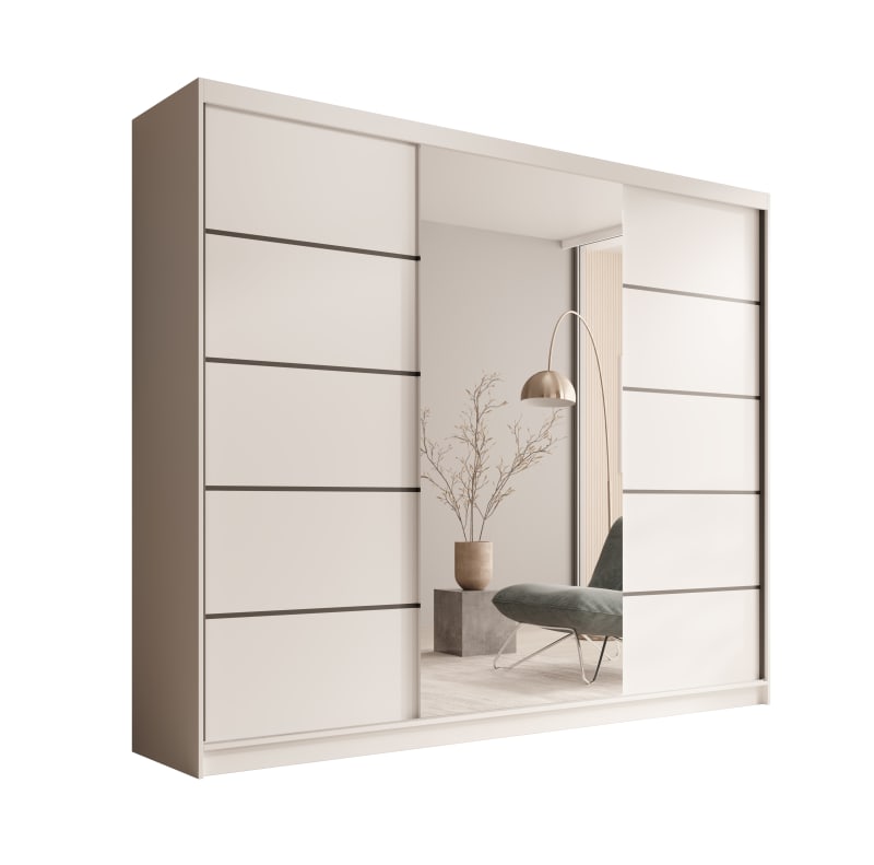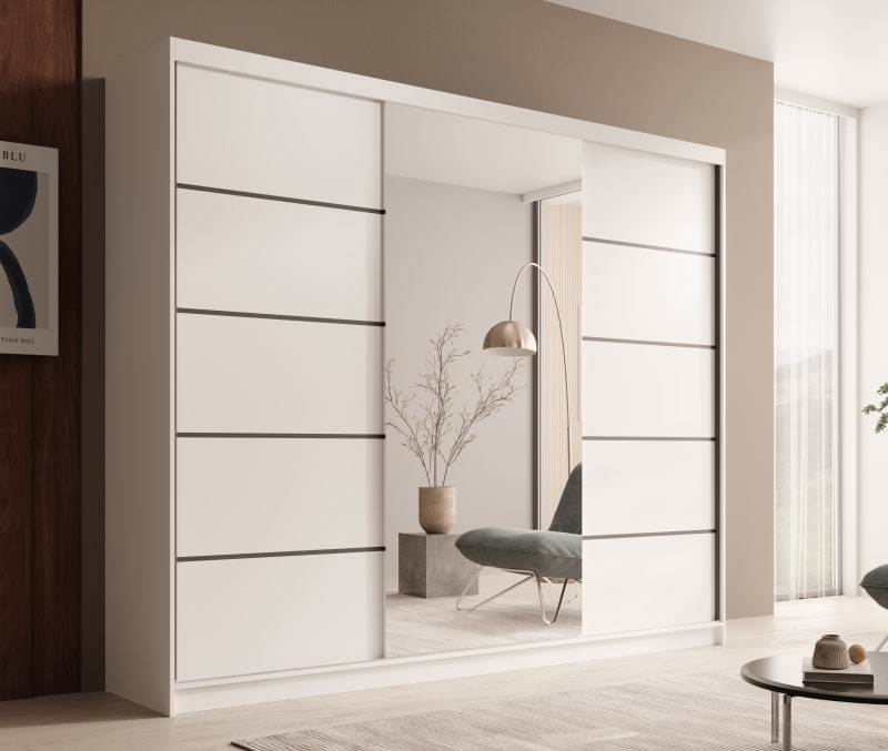 A Tolóajtós szekrény Etna 250 elegáns és funkcionális megoldást kínál minden hálószobába vagy gardróbba. Modern kialakítása tökéletesen illeszkedik különféle belsőépítészeti stílusokhoz, míg az elülső nagy tükör optikailag tágasabbá teszi a teret, és könnyedséget kölcsönöz a helyiségnek. Az Etna 250 szekrény esztétika és funkcionalitás tökéletes kombinációja, amely kényelmes tárolást biztosít, és segít rendben tartani az otthonodat!