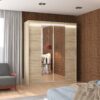 A LINCOLN tolóajtós szekrény ideális megoldás a térrendezéshez. A bútor tágas polcokkal és ruhásszárítóval van felszerelve, ahol ruháidat, öltönyeidet, kültéri ruházatodat vagy ingeidet akaszthatod fel. A tolóajtós kivitelnek köszönhetően nem kell plusz helyet szánnod az ajtók kinyitására, így tökéletes választás kis hálószobákba vagy keskeny előszobákba. Érdekes előnye a látványos LED világítás, ami varázslatos hangulatot kölcsönöz a szekrénynek és a helyiségnek egyaránt.