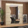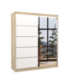 A CARO tolóajtós tükör szekrény ideális módja a tér rendszerezésének. A bútor tágas polcokkal és ruhásszárítóval van felszerelve, ahol ruhákat, öltönyöket, külső ruhákat vagy ingeket lehet akasztani. Az elején tükrök és jellegzetes ezüstszínű vízszintes csíkok találhatók, amelyek egyedi stílust kölcsönöznek a bútornak. A tolóajtós kivitelének köszönhetően nem szükséges plusz helyet biztosítani az ajtó kinyitásához, így tökéletes megoldás kis hálószobákhoz vagy keskeny előszobákhoz. Érdekes előnye az esztétikus LED világítás, amely varázslatos bájt kölcsönöz mind a szekrénynek, mind a helyiségnek.