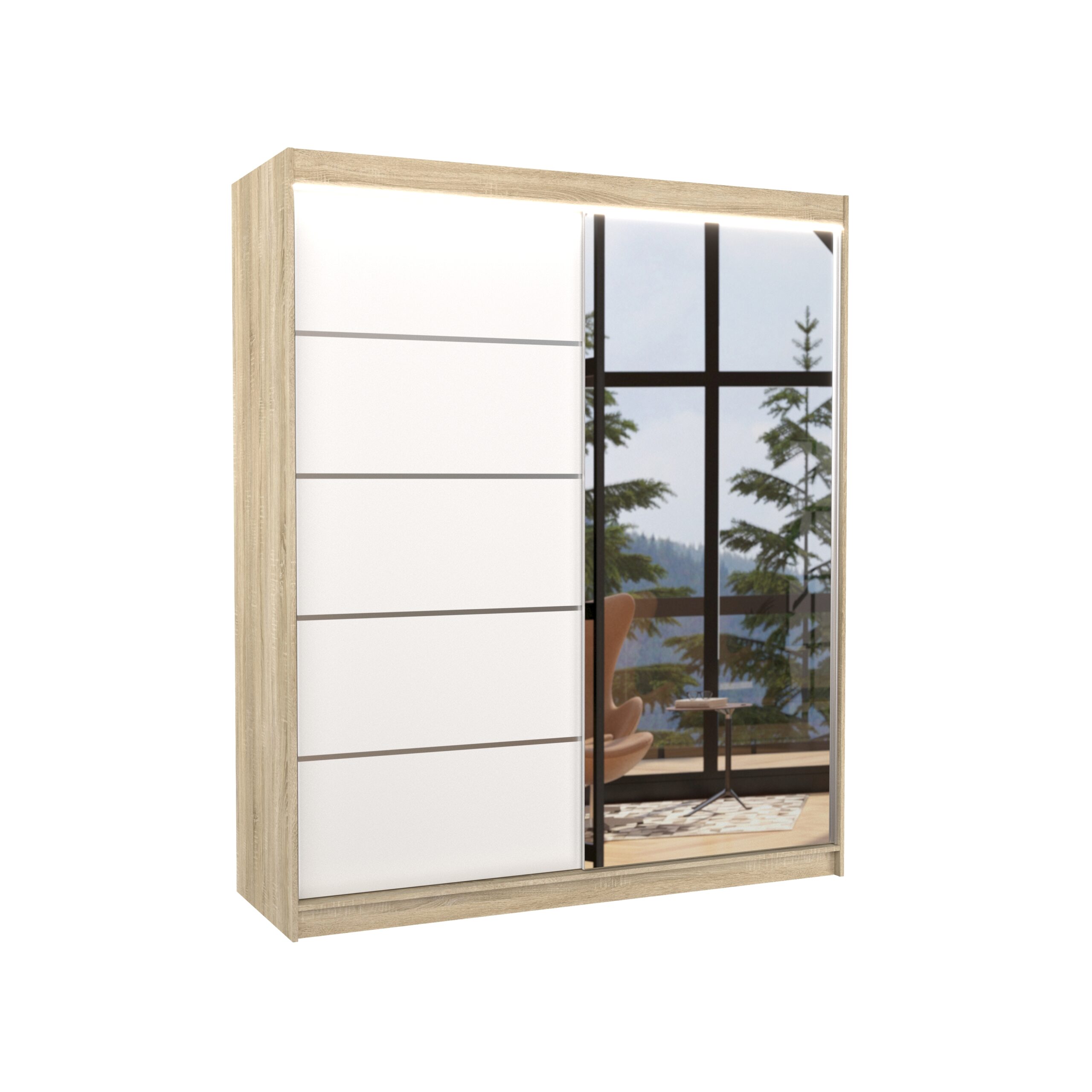 Tolóajtós szekrény tükörrel és LED világítással CARO 180
