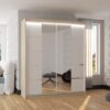 A MORGAN tolóajtós tükör szekrény ideális módja a tér rendszerezésének. A bútor tágas polcokkal és ruhásszárítóval van felszerelve, ahol ruhákat, öltönyöket, külső ruhákat vagy ingeket lehet akasztani. Az elején tükrök vannak rögzítve, amelyek optikailag nagyítják a teret. A tolóajtós kivitelének köszönhetően nem szükséges plusz helyet biztosítani az ajtó kinyitásához, így tökéletes megoldás kis hálószobákhoz vagy keskeny előszobákhoz. Érdekes előnye az esztétikus LED világítás, amely varázslatos bájt kölcsönöz mind a szekrénynek, mind a helyiségnek.