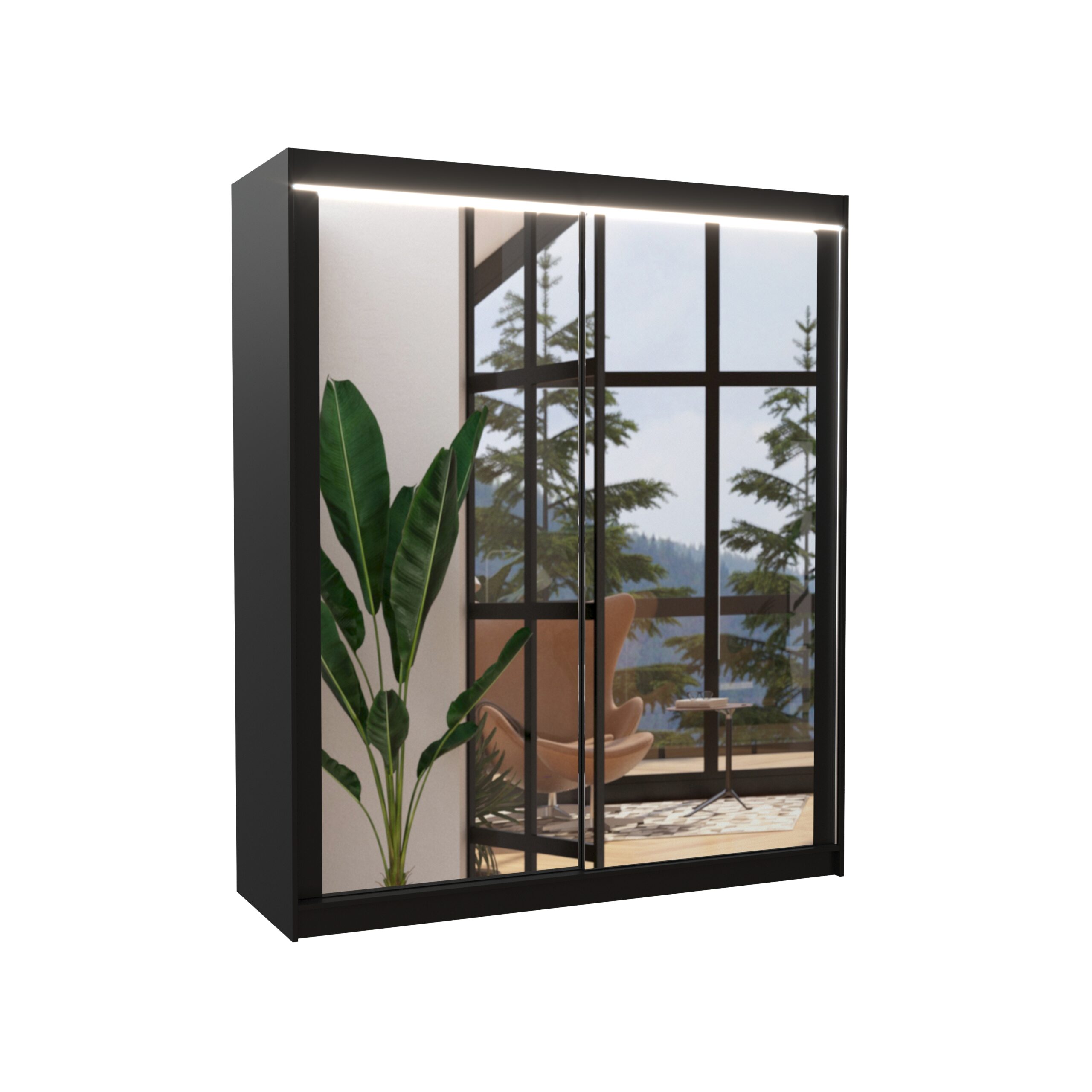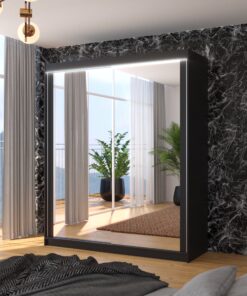 Tolóajtós szekrény tükörrel és LED világítással CHARLOTTE 180
