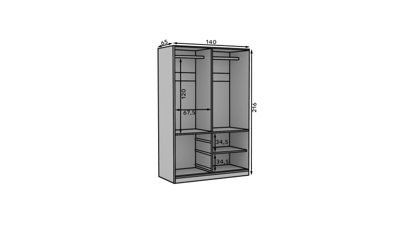 A HAIDAR tolószekrény ideális módja a tér rendezésének. A bútor tágas polcokkal és fiókokkal, valamint rudakkal van felszerelve, amelyekre ruhákat, öltönyöket, felsőruhákat vagy ingeket akaszthat. Annak köszönhetően, hogy a szekrény tolószekrény, nem kell további helyet kijelölnie az ajtó kinyitásához, így tökéletes megoldás egy kis helyiségbe vagy egy keskeny előszobába.