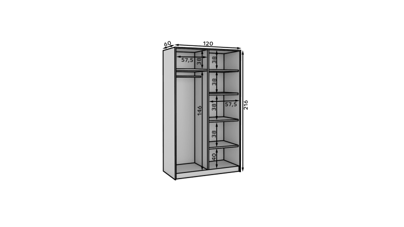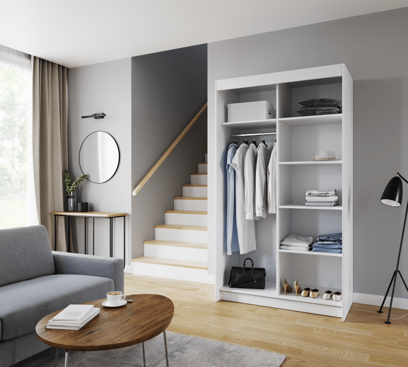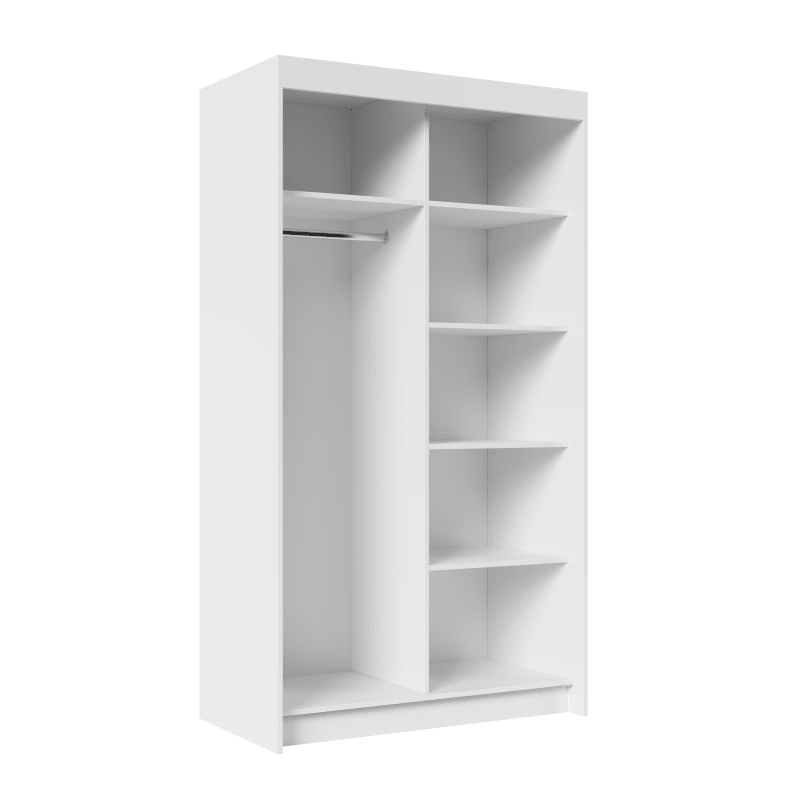 A SHALVA tolószekrény ideális módja a tér rendezésének. A bútor tágas polcokkal és egy rúddal van felszerelve, ahová ruhákat, öltönyöket, felsőruhákat vagy ingeket akaszthat. Annak köszönhetően, hogy a szekrény tolószekrény, nem kell további helyet kijelölnie az ajtó kinyitásához, így tökéletes megoldás egy kis helyiségbe vagy egy keskeny előszobába.