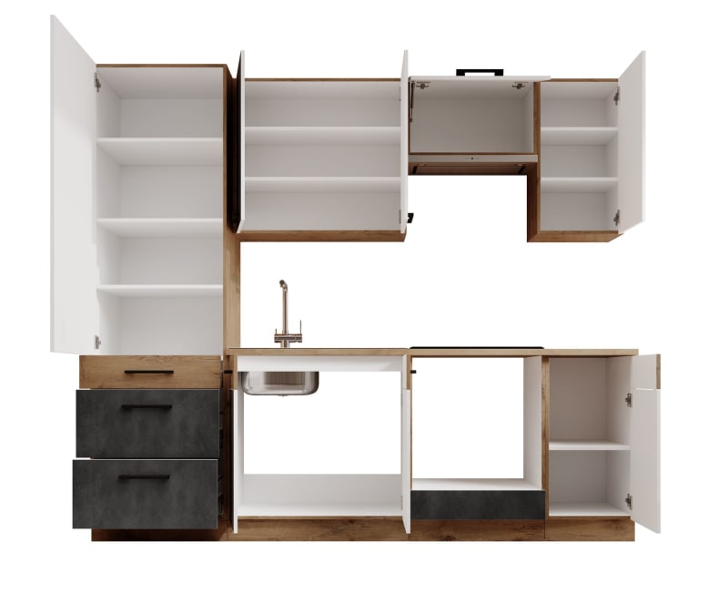 A Vika kollekció egy 7 modulból álló konyhai szekrénykészlet, amely lehetővé teszi az összes szükséges konyhai kiegészítő tárolását. A Vika készlet alkalmas sütő beépítésére. A matera és lancelot kombinációja kifejező karaktert kölcsönöz a konyhának, valamint élvezetessé teszi a főzést. A készlet rendelkezik egy olyan munkalappal, amely kiválóan használható a mindennapi használat során. A magas minőségű anyagok használatának köszönhetően a bútorok tartósak és ellenállóak a károsodásokkal szemben.