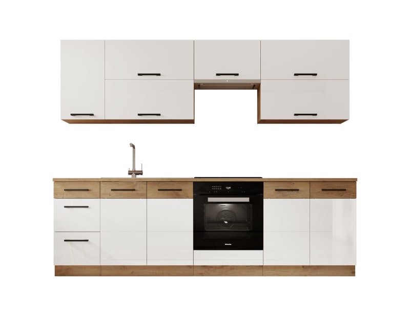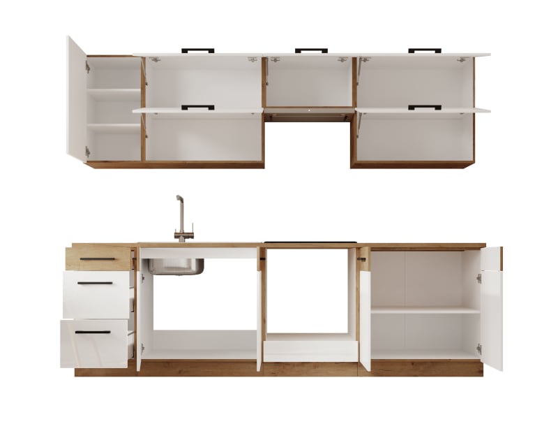 A Vika kollekció egy 8 modulból álló konyhai szekrénykészlet, amely lehetővé teszi az összes szükséges konyhai kiegészítő tárolását. A Vika készlet alkalmas sütő beépítésére. A fehér és lancelot kombinációja kifejező karaktert kölcsönöz a konyhának, és nagy örömet szerez a főzés során. A készlet rendelkezik egy olyan munkalappal, amely kiválóan használható a mindennapi használat során. A magas minőségű anyagok használatának köszönhetően a bútorok tartósak és ellenállóak a károsodásokkal szemben.